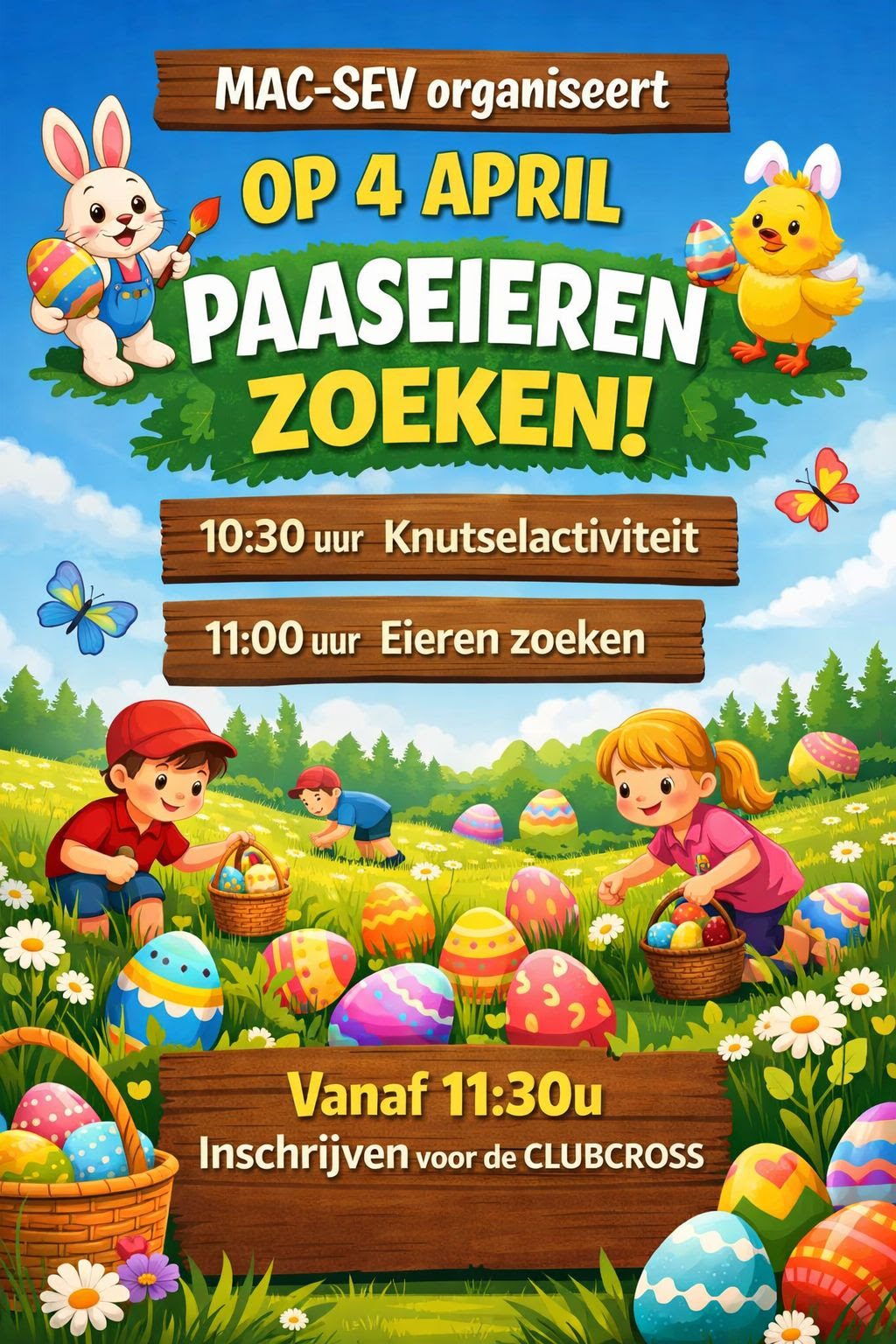 Dit jaar zal er voorafgaand aan de clubcross eieren zoeken worden georganiseerd voor de kinderen. Zie bijgaande poster voor alle informatie.